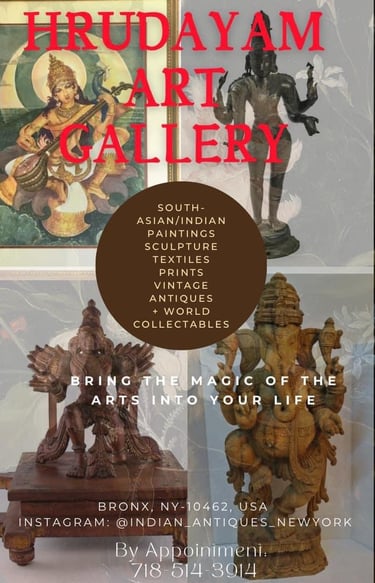 Explore our collection of authentic South Asian, Indian Art, Vintage, and Antique Treasures that inspire and enchant. The permanent collection is on display at our private Bronx gallery for your enjoyment. Some items may travel to Pop-Up Exhibits, Educational Sessions, Promotional Events, on Loans to Institutions, and are Not For Sale (NFS)
